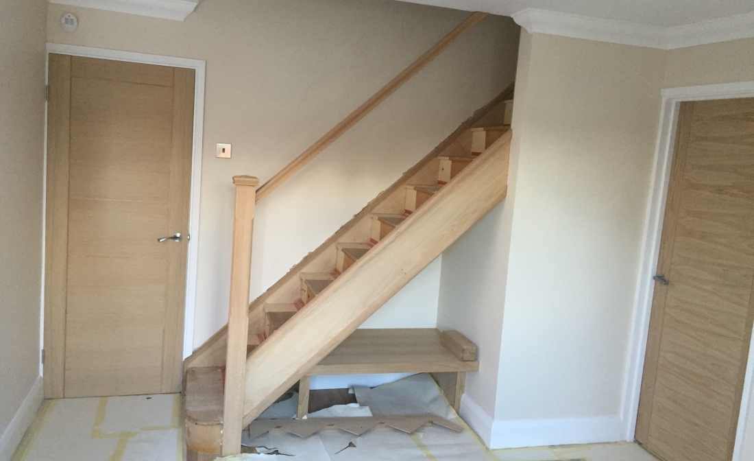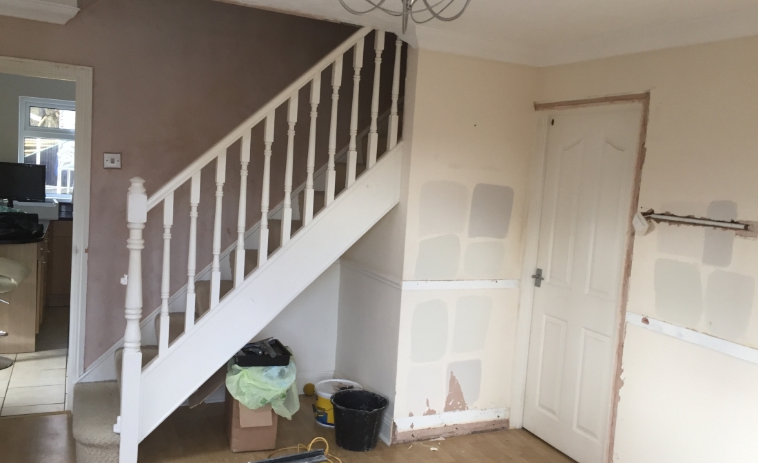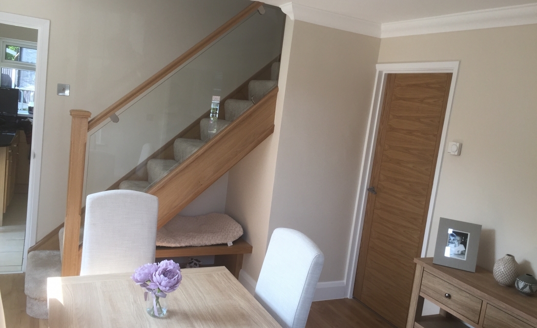 Via a recommendation, we were approached to refurbish a dining area to a property in Eastwood. The works comprised of replastering, full redecoration, changing doors and staircase to oak and the installation of a new Karndean flooring. Most of the works were undertaken while the clients enjoyed a family holiday abroad. They could see the update progress of the work via our Facebook page.